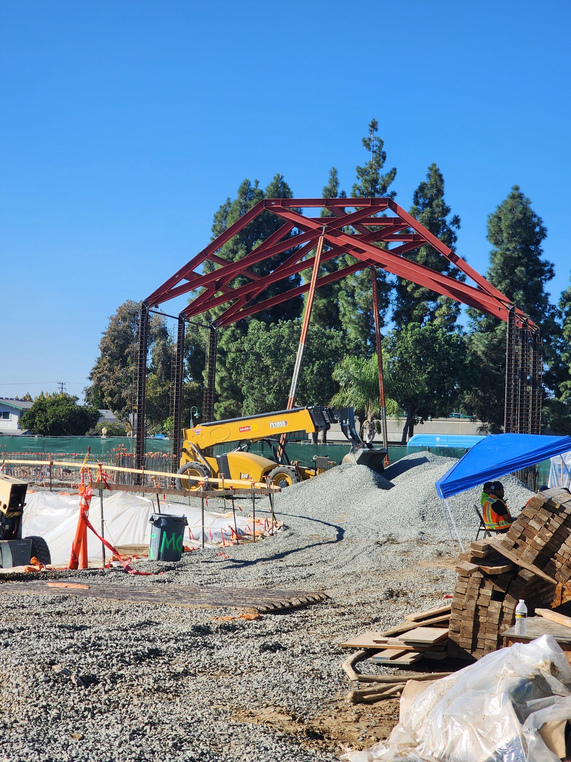 Planning for steel erection in the recital hall space was carried out ahead of steel deliveries in the third week of the month in coordination with the City of Fullerton to ensure the correct safety measures were taken; framing activities began in the same week. A pre-installation meeting for waterproofing was held to address additional items with the Design Team.