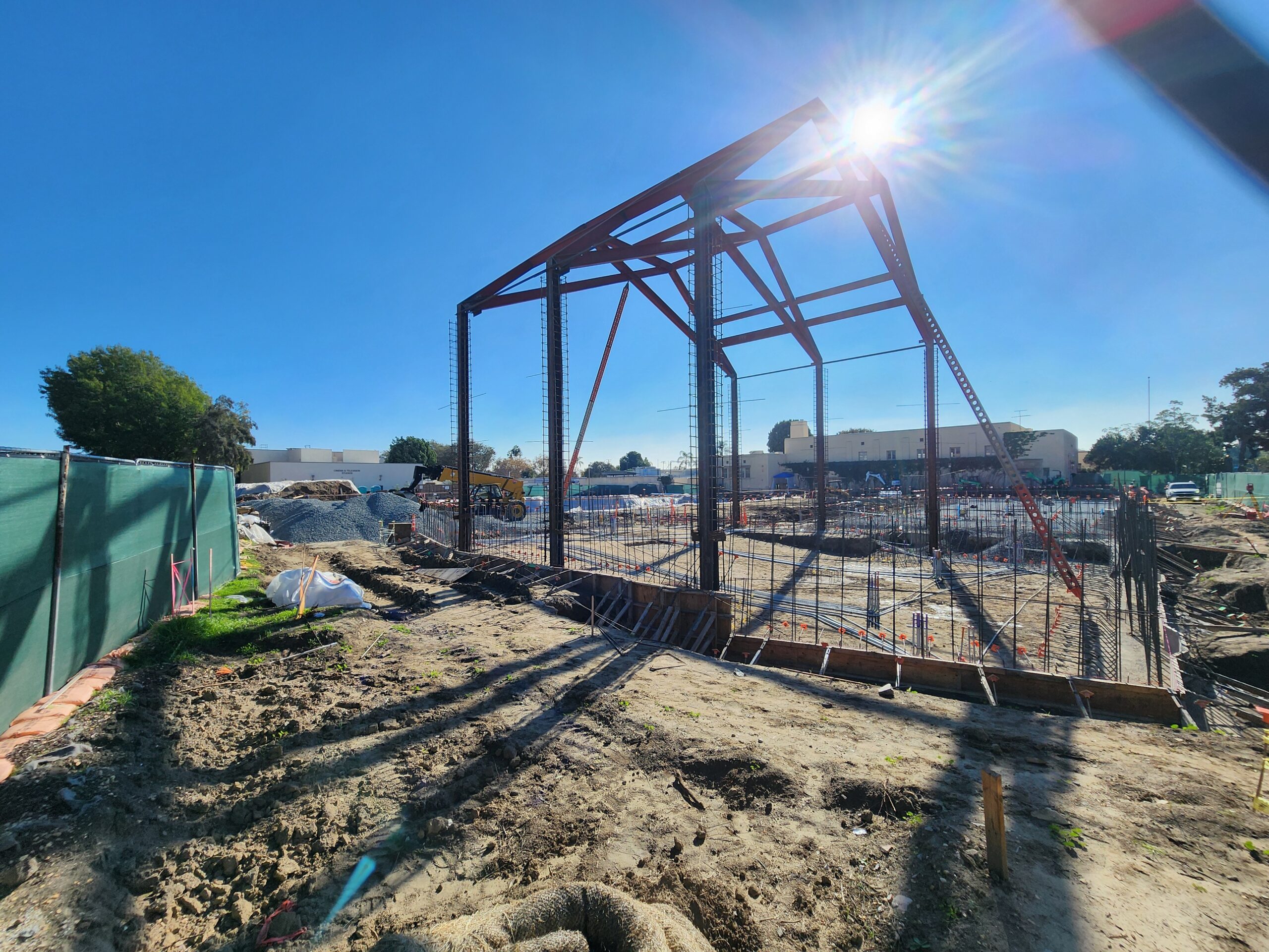 A groundbreaking ceremony is planned for November 19 to mark the start of construction. Coordination for deferred submittals to DSA continues with subcontractors and the Design Team. Fabrication of structural steel is in progress, with deliveries expected by the end of October. Pending requests for information (RFIs) are delaying some concrete pours. Protective measures were implemented during a mid-October storm to safeguard foundation work.