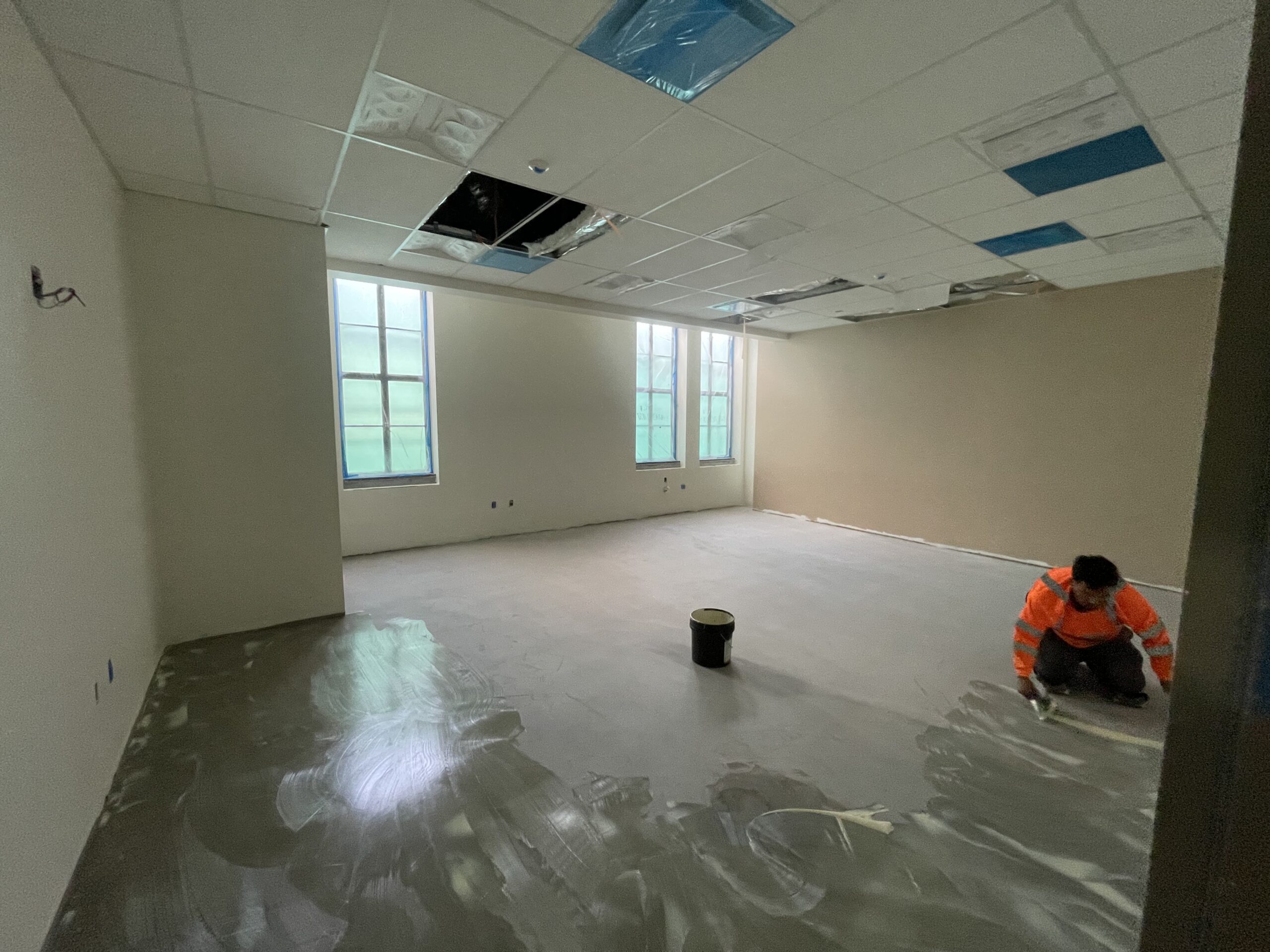 Classroom and hallway flooring is undergoing leveling activities, with the installation of floor sealer to follow in mid-September. Carpet and all remaining flooring are expected to begin in the last week of September and continue into the second week of October.