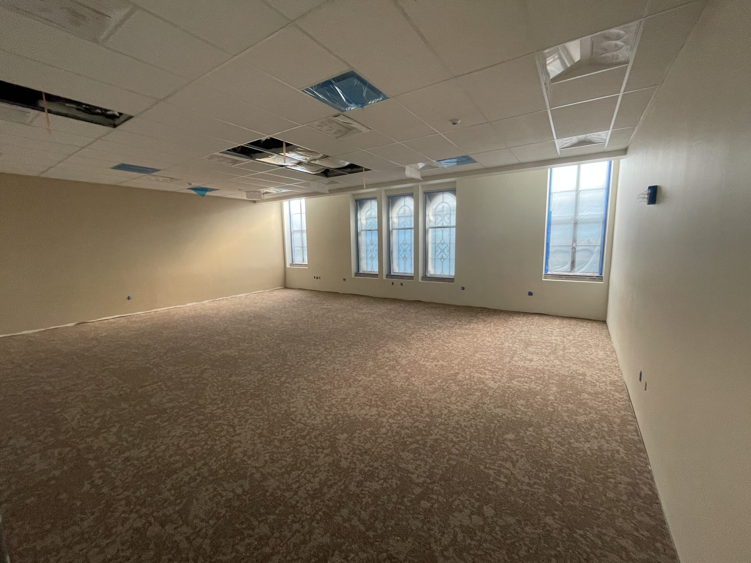 On the first floor, taping and sanding concluded in early August, followed by primer and the application of the first coat of paint. Ceiling grid installation is expected to start in the third week of August. Flooring is anticipated to be completed by mid-October, with the placement of self-leveling concrete and the installation of resilient tile flooring and carpeting. Commissioning is expected to start in late November.